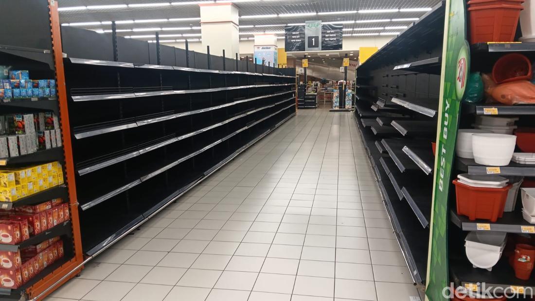 Menurut pengawasan AFP pada hari Selasa (1/4/2025), ini adalah salah satu toko besar di Lulu, Jakarta Timur. Di daerah ini, sebagian besar wilayah sangat kosong dan tidak ada satu produk.