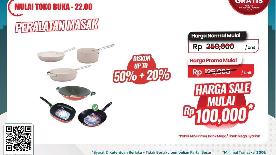 Ibu perlu mendapatkan alat memasak baru dengan alat diskon hingga 50% yang diberikan untuk pencapaian. Mesin kuliner ke Teflon diberikan kepada Teflon ke Teflon ke Teflon. Bahkan, harga pertama adalah RP. 250.000 / unit.