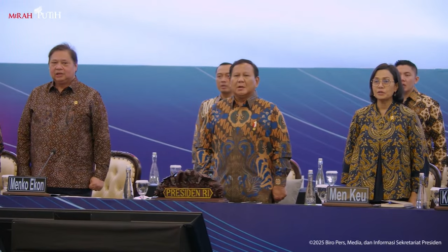 Presiden Prabolo Subianro kembali dengan karyawan bisnis Indonesia. Ekonom yang diperdagangkan; Investor; Perwakilan dari bank dan organisasi kelompok bisnis dan perdagangan hadir.