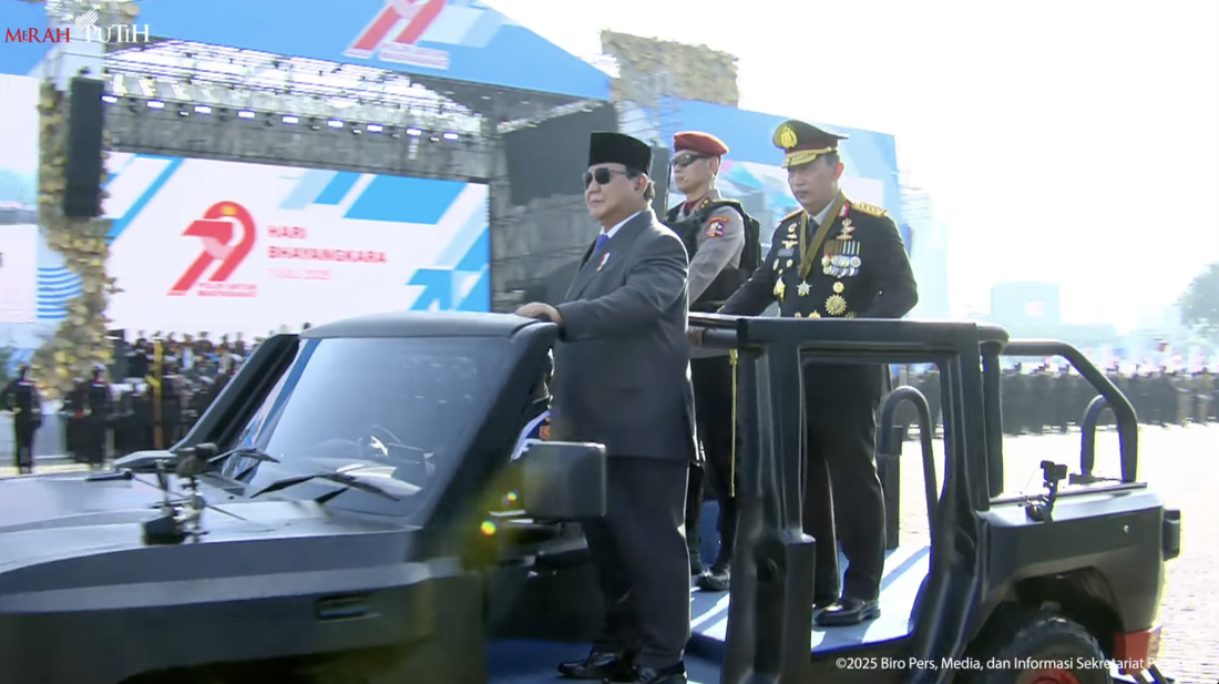 Presiden Prabovo Sabinto menggunakan mobil yang dipasang pada Hari Bhayangkara ke -79 di Monus, Jakarta Tengah atas kerusakan lucu. Namun, pasukan memeriksa di gunung Mong Prabovo agak berbeda.